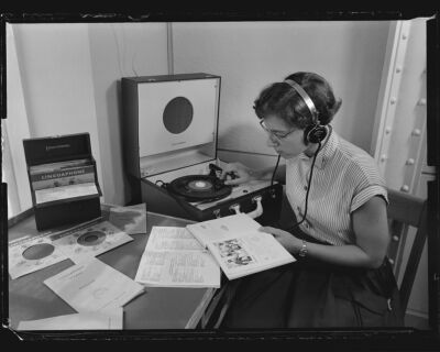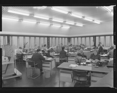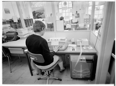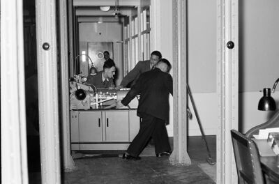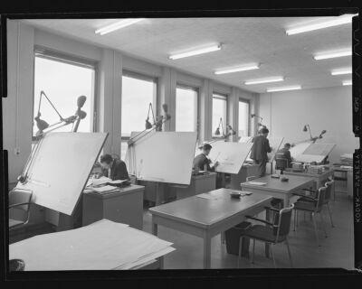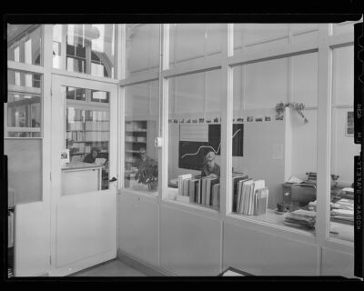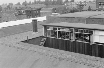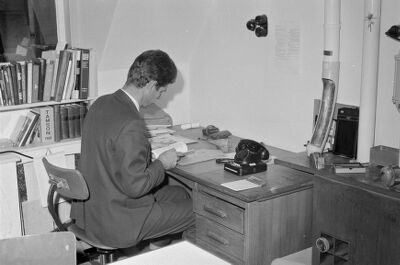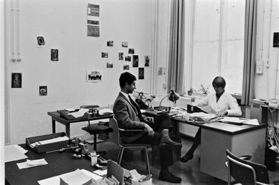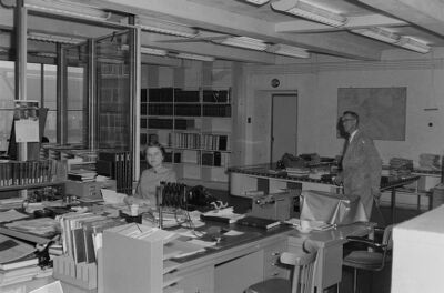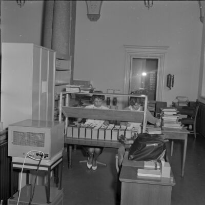 Kantoorruimte en discotheek in de bibliotheek van de Technische Hogeschool Delft