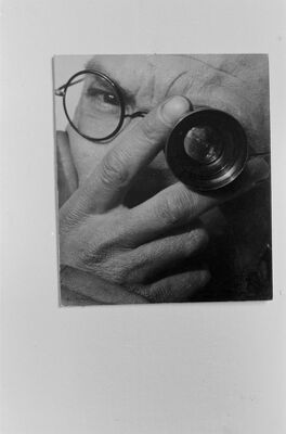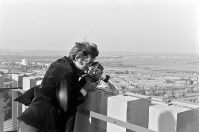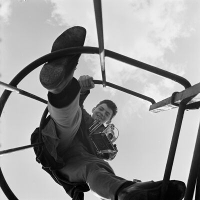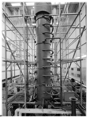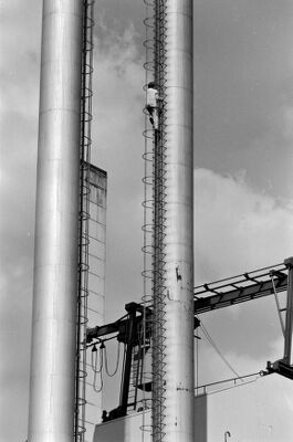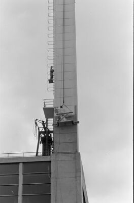 Fotografen van de TH Delft in de schoorsteen van TNO