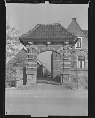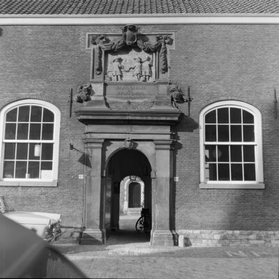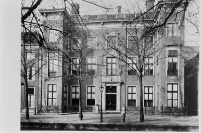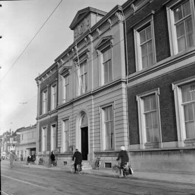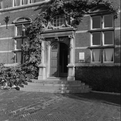 Gevel en ingang van de Bibliotheek van de Technische Hogeschool Delft