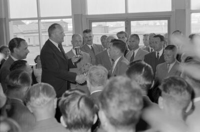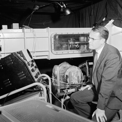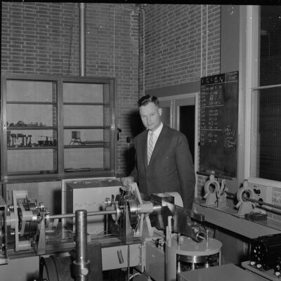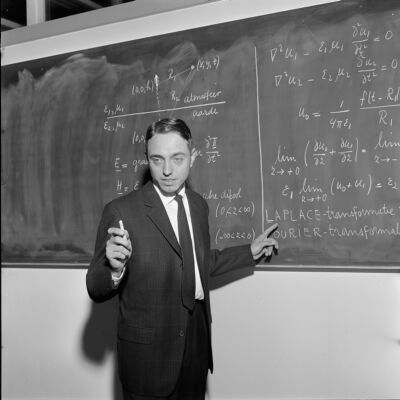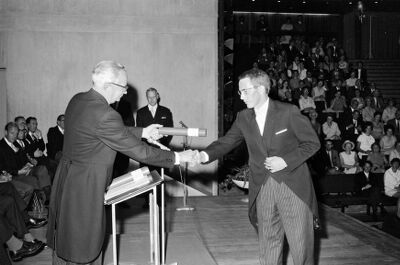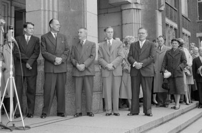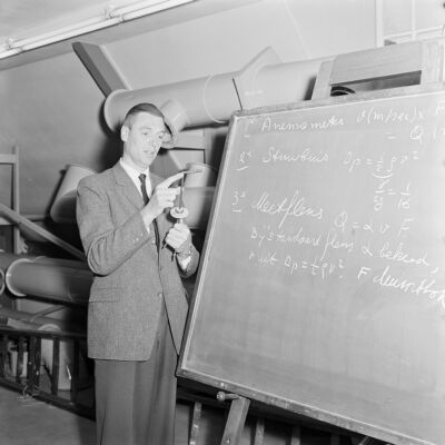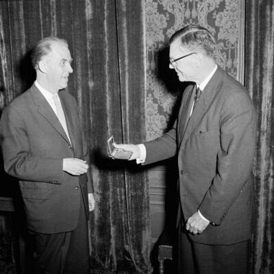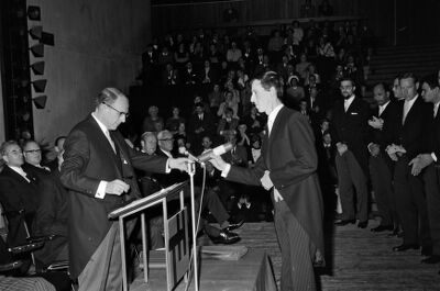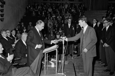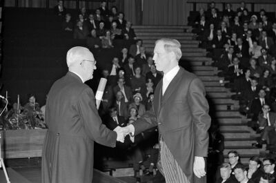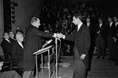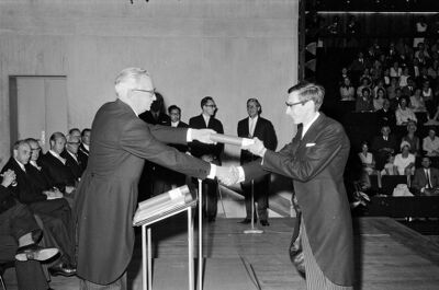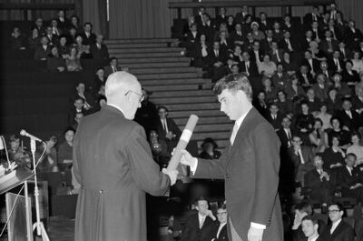 In 1959 ontving John Douglas Cockcroft het eredoctoraat van de Technische Hogeschool Delft