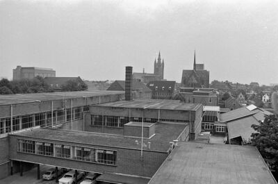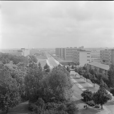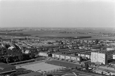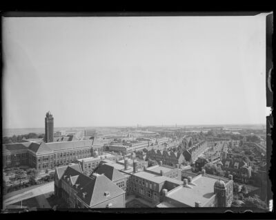 TU wijk, centrum en woningen in Wippolder gezien vanaf het dak van Faculteit Elektrotechniek.