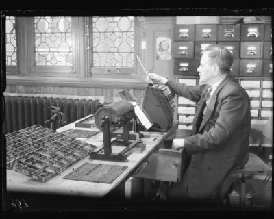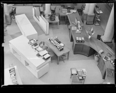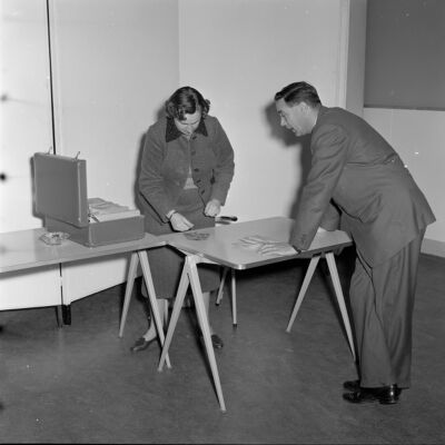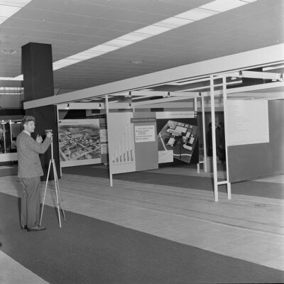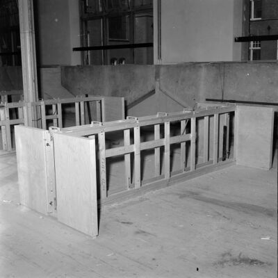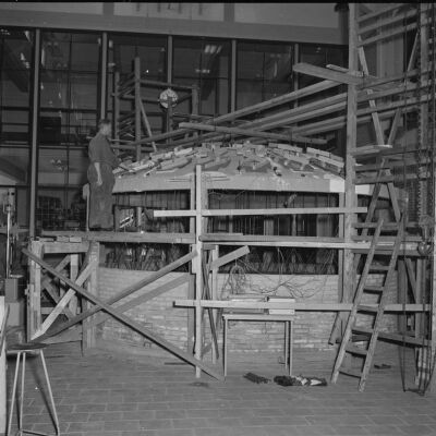 Opbouwen en inrichten van een tentoonstelling in de bibliotheek van de Technische Hogeschool Delft