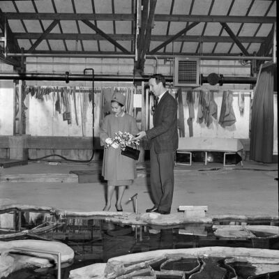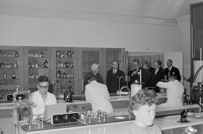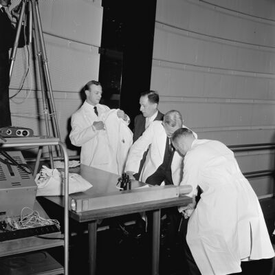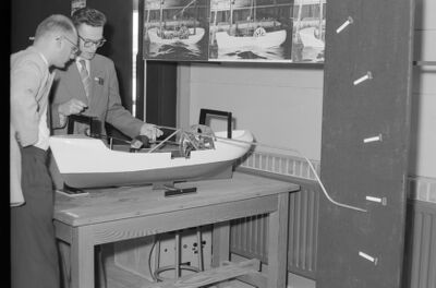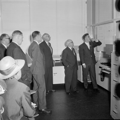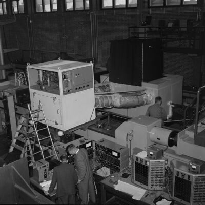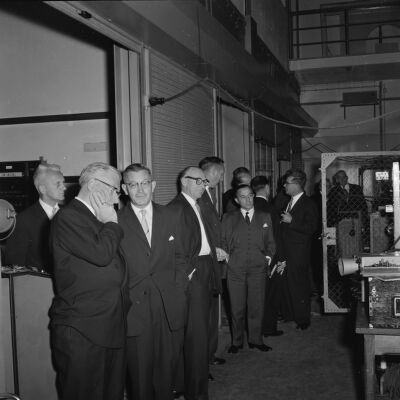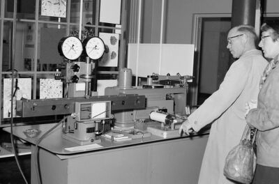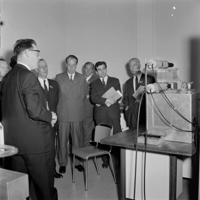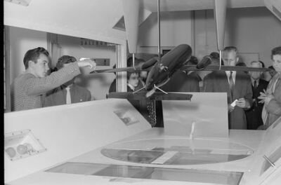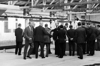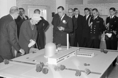 Koninklijk bezoek aan de Technische Hogeschool Delft: Bezichtiging maquette kernreactor