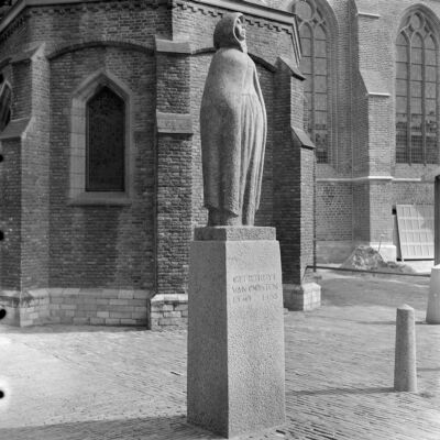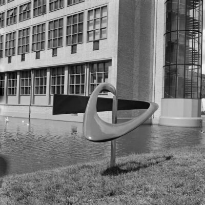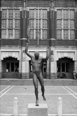 Standbeeld Prometheus voor het hoofdgebouw van de TH Delft