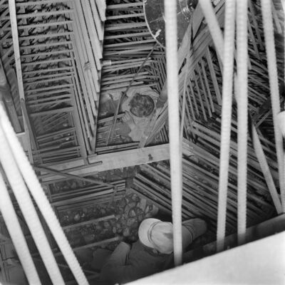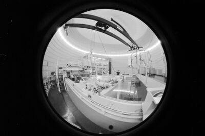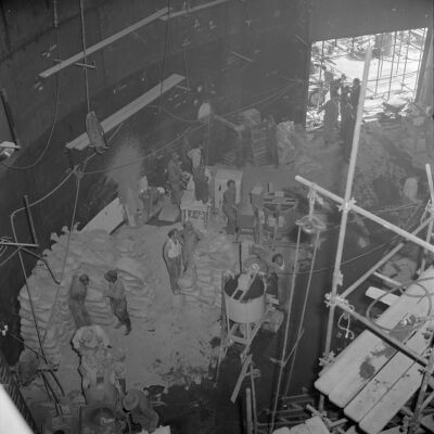 Bouwwerkzaamheden aan de binnenzijde van de TH Delft kernreactor in aanbouw (1)