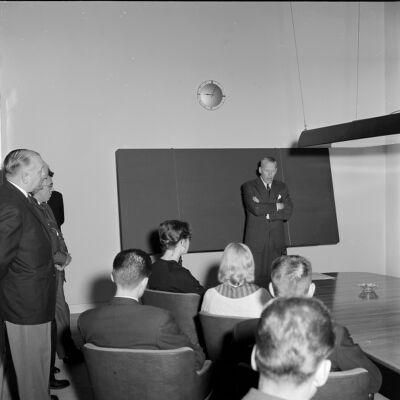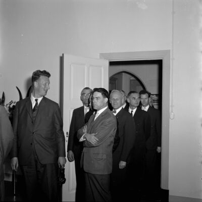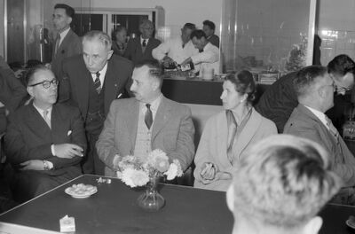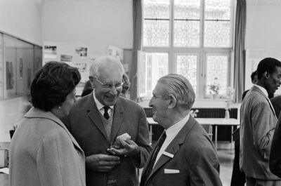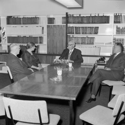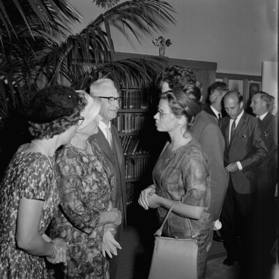 Bezoek van dr. ir. Beuken aan de literatuurtentoonstelling "Beukenmodel"