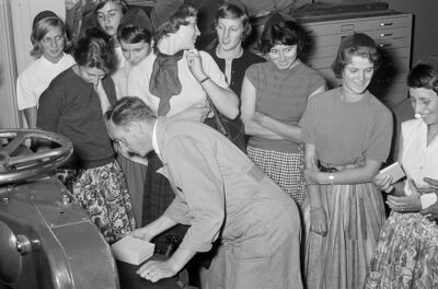 Bibliotheekpersoneel van de Technische Hogeschool Delft een dagje uit naar de Ford fabriek in Amsterdam (4)