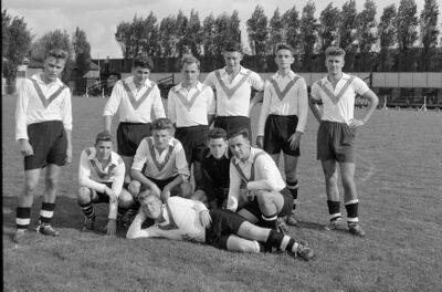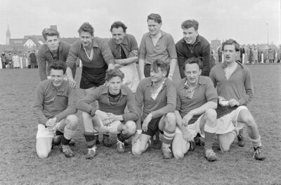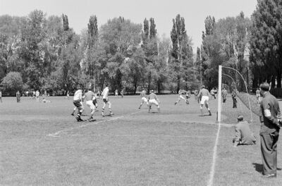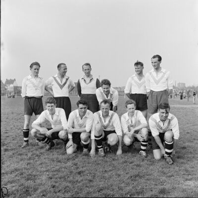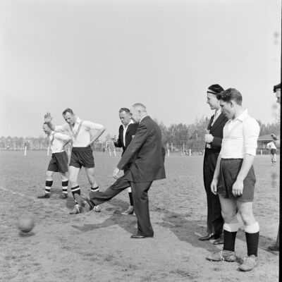 Voetbalwedstrijd t.g.v. het 50-jarig bestaan van de Elektrotechnische Vereeniging ETV, TH Delft