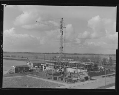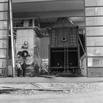 Warmtekrachtcentrale TU Delft, voormalig ketelhuis in aanbouw