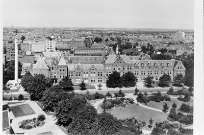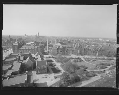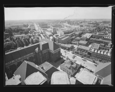 Gebouwen van Technische Natuurwetenschappen, de Aula en Werktuigbouwkunde en Scheepsbouwkunde van de Technische Hogeschool Delft