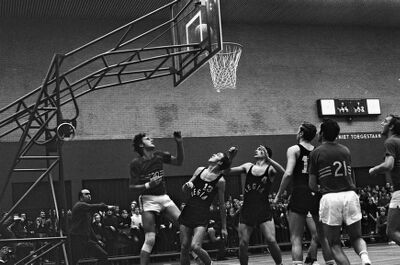 Europacuptoernooi basketbalwedstrijd D.S.B.V. Punch Delft - W.K.S. Legia Warschau (5)