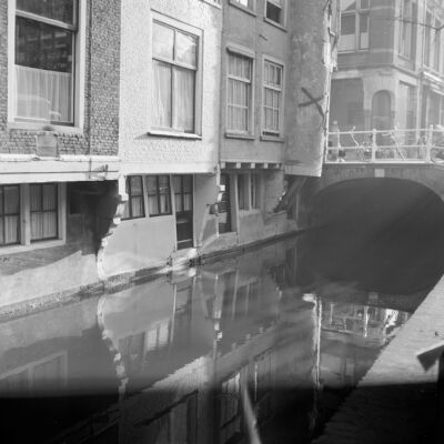 Scheuren in het gebouw aan de Nieuwelaan van de Technische Hogeschool Delft