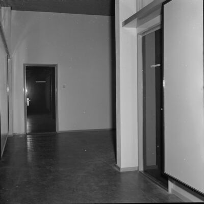 Nooduitgang, goederenmagazijn en koffieautomaat in bibliotheek Technische Hogeschool Delft