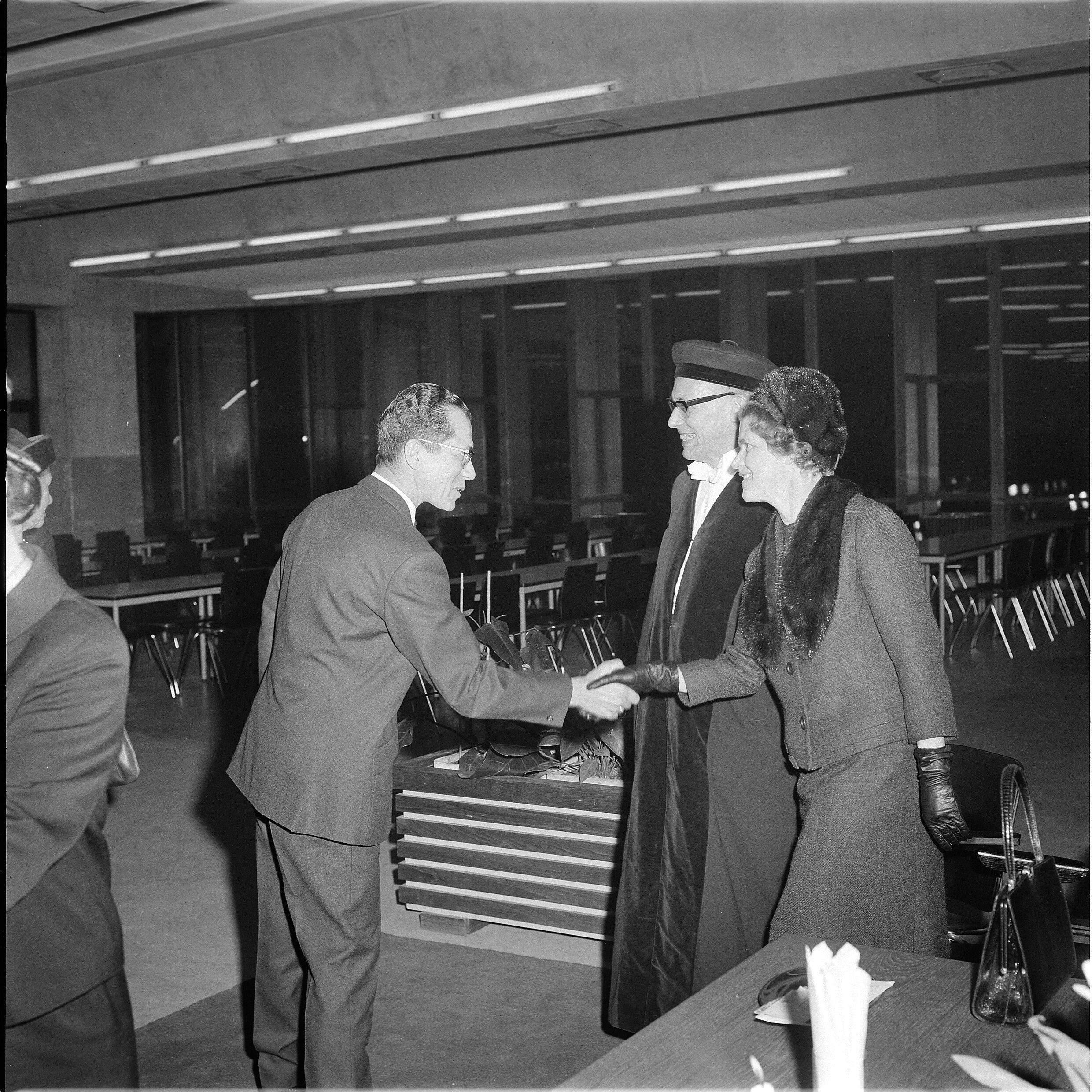 | Description | Ir. H.J. Schoemaker aanvaardde op 1 februari 1967 in het openbaar het ambt van buitengewoon hoogleraar in de irregatie in de afdeling der Weg- en Waterbouwkunde, met een rede, getiteld: "Exotische waterbouwkunde" Harold Jan Schoemaker werd op 16 december 1913 te Bandoeng geboren. In 1932 behaalde hij in Delft het einddiploma gymnasium-b. In 1937 verwierf hij aan de Technische Hogeschool te Delft het diploma van civiel-ingenieur. Na in 1937 en 1938 ingenieur te zijn geweest bij de bouwafdeling van de NV Philips Gloeilampenfabrieken te Eindhoven was hij van 1939 tot 1947 als ingenieur verbonden aan het departement van Verkeer en Waterstaat in Nederlands Oost-Indie. In 1946 trad hij als ingenieur in dienst van het Waterloopkundig Laboratorium te Delft. In 1960 werd hij tot directeur benoemd. Opnamen van de redevoering en de receptie |