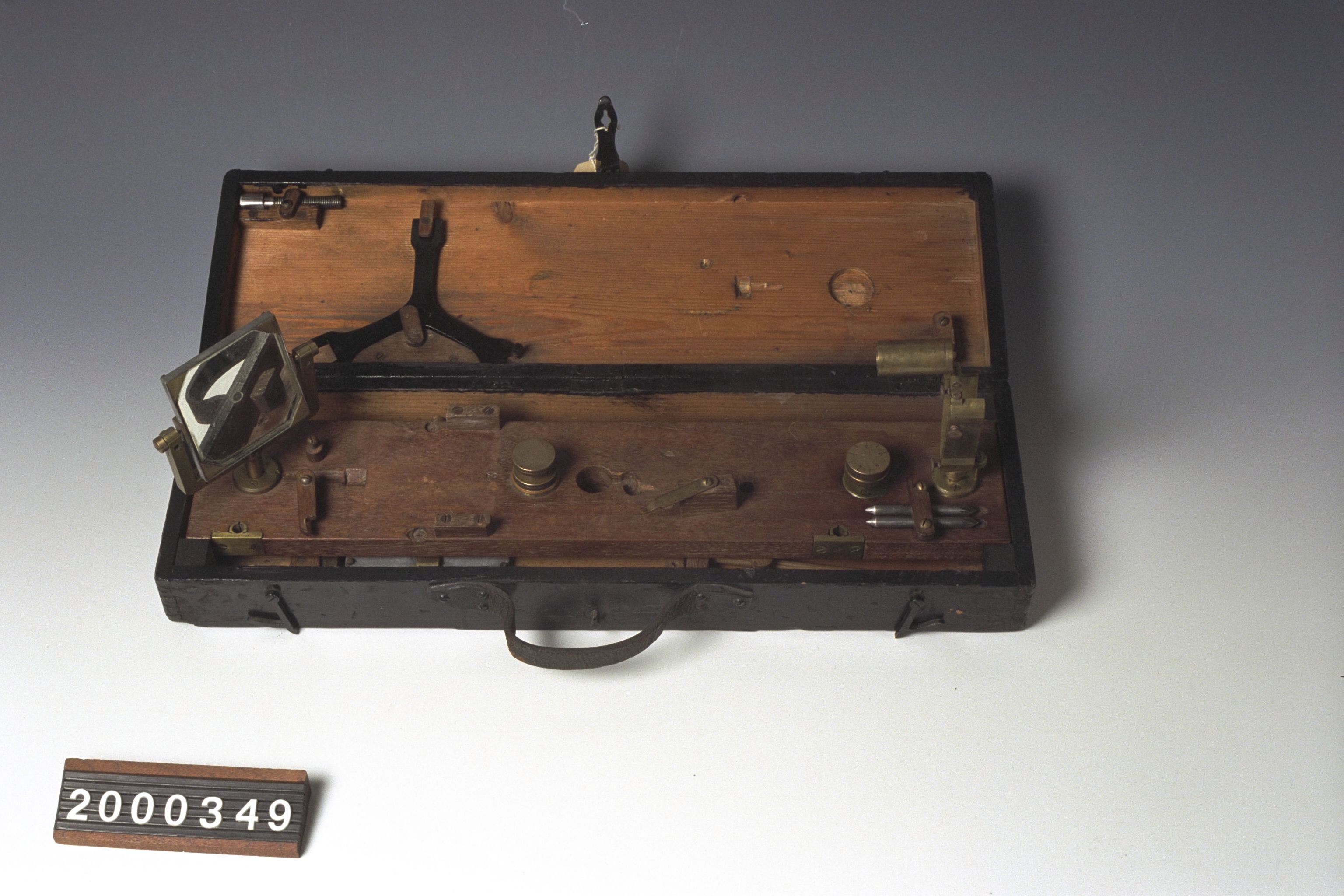 | Description | Houten kist met een heliotroop of zonnespiegel. De uitrusting bestaat uit een stelplank, een vizier, een stelschroef, een hamer, een heliotroopspiegel met los diafragma en een losse heliotroopspiegel. Deze heliotroop is gebruikt bij de Rijksdriehoeksmeting van Nederland en in eigen werkplaats vervaardigd. In 1820 kwam C.F. Gauss op de gedachte zonlicht te gebruiken voor het zichtbaar maken van ver gelegen punten bij driehoeksmetingen. De eerste heliotroop werd in 1821 geconstrueerd. Dit type instrument is in 1829 door Bertrand ontworpen. Op een richtpunt (ver van een standplaats) werd dit hulpmiddel zodanig geplaatst dat zonlicht via de spiegel in de richting van de standplaats werd teruggekaatst. Er moest wel tijdens de meting doorlopend iemand bij dit instrument staan die met een houten hamertje de spiegel de juiste stand tikte, waardoor tijdens de meting het zonlicht weerkaatst bleef in de richting van de standplaats (theodoliet). Heliotropen zijn tot ver in de 20e eeuw gebruikt bij triangulatie activiteiten in landen zoals Saoedi-Arabië. |