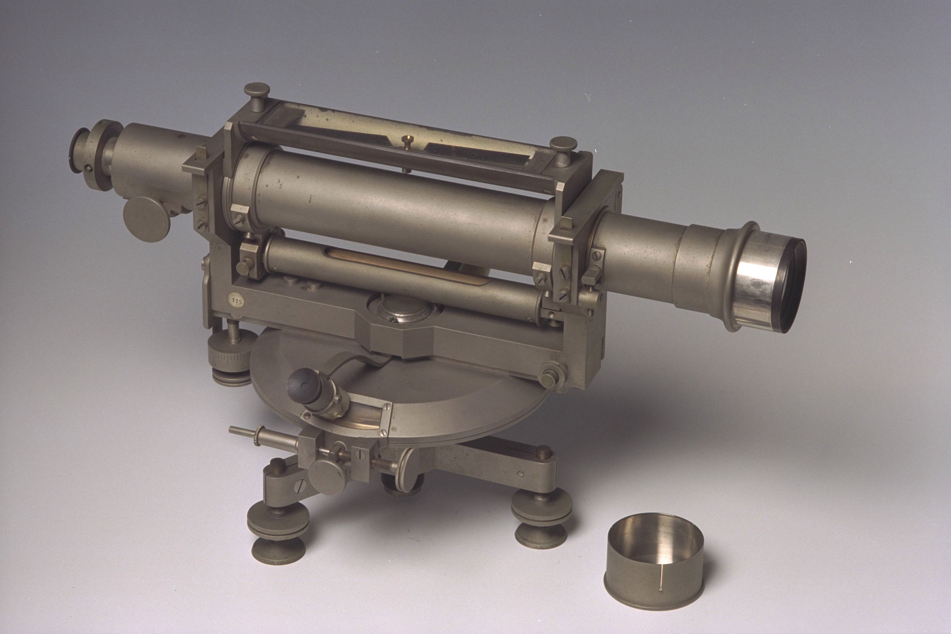 | Description | Waterpasinstrument door Instrumentenfabriek H.M. Smitt, voorzien van een horizontale rand en micrometer-hellingschroef, een afneembaar oriënteringskompas (boussole) en een reversieniveau dat bevestigd is aan de kijker. Diameter objectief 40 mm en een brandpunt van 40 cm, en -oorspronkelijk - kruisdraden van spinrag (die nu vergaan zijn). |