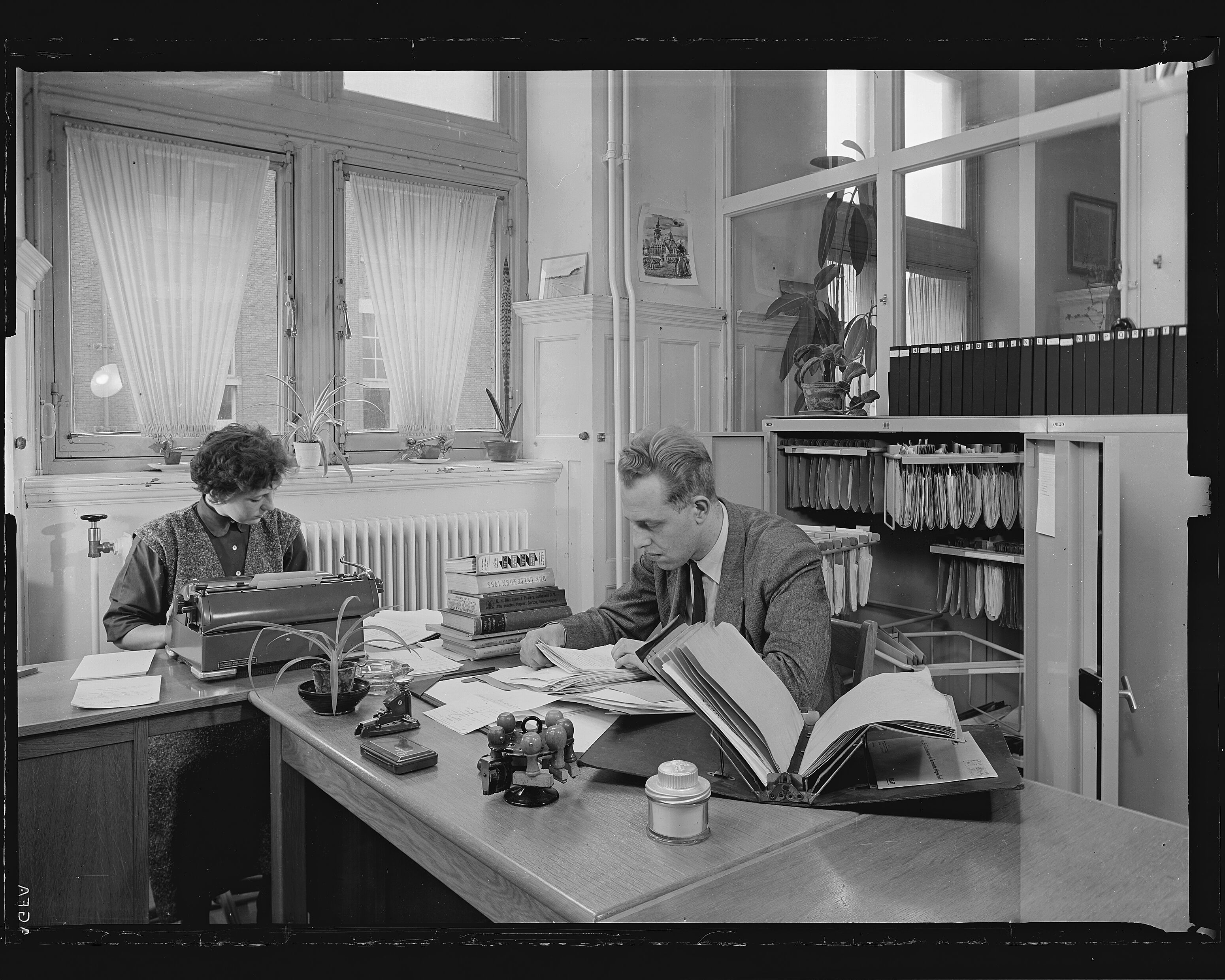 DescriptionFoto’s van de afdeling Postleenverkeer en de Centrale Technische Catalogus voor Nederland. Het aantal aanvragen dat de Afdeling kreeg te verwerken was wederom groter dan het vorige cursusjaar. Het aantal per post uitgeleende werken daalde echter, daar de aanvragers vaak fotocopieën werden toegezonden in plaats van de tijdschriftbanden zelf. Voor het feit dat de Afdeling over te weinig bibliotheek-technisch geschoold personeel beschikt, is nog steeds geen oplossing gevonden. Toch is dit voor het bibliografisch verifiëren van de aanvragen een noodzakelijkheid. De titels van de Centrale Technische Catalogus zijn nu praktisch alle op een kleiner formaat kaarten (7J X 12-2-) overgebracht en reeds gedeeltelijk in nieuwe stalen kaartenkasten gerangschikt. De Centrale Technische Catalogus telt thans 74 deelnemers.