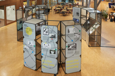 Photos of the "Rise of a Campus" exhibition at TU Delft Aula