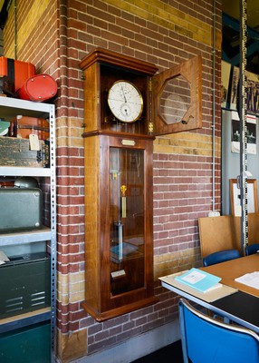 Photos of the pendulum clock by Strasser & Rohde on display at the depot of Stichting De Hollandse Cirkel (Kanaalweg 4)