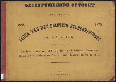 Gecostumeerde optocht gehouden door de leden van het Delftsch Studentencorps, 9 Juli 1878, voorstellende: De intocht van Willem VI, Hertog in Beijeren ... binnen Utrecht in 1415 / met programma