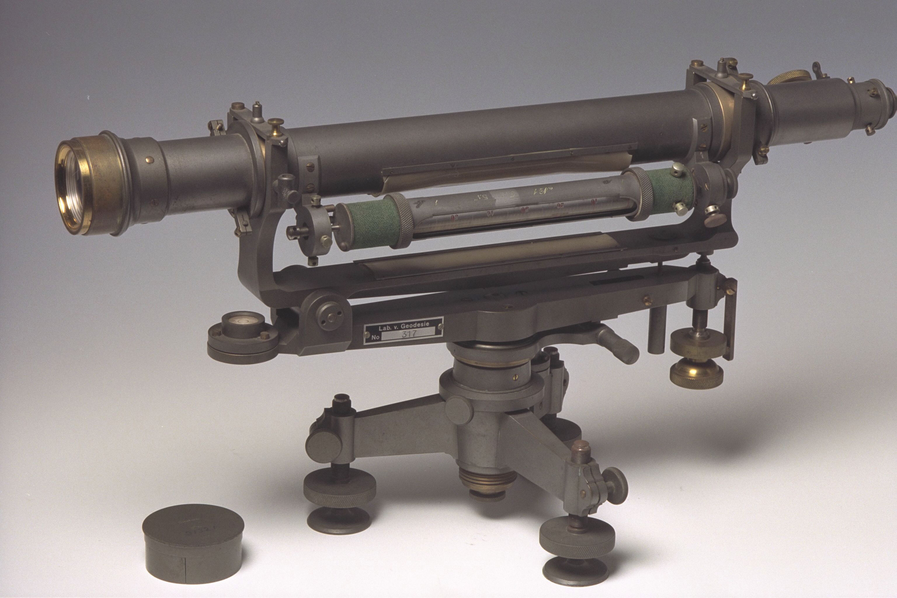 BeschrijvingWaterpasinstrument door F.W. Breithaupt & Sohn, voor nauwkeurige hoogteverschilmeting d.m.v. doorgaande waterpassing, met een reversieniveau en een micrometerhellingschroef. Het is gebouwd volgens aanwijzingen van prof. ir. Hendrik Jan Heuvelink (1861-1949) en gebruikt voor onderzoek naar methoden voor de herziening (tweede nauwkeurigheidswaterpassing (1926-1940)) van de Rijkswaterpassing van Nederland. Dit instrument is getest in 1921 door de latere minister-president van Nederland ir. Willem Schermerhorn (1894-1977), evenals het identieke instrument de nr 31322 van de T.H. Bandung, waarbij aangemerkt wordt dat de nr 31322 beter was.