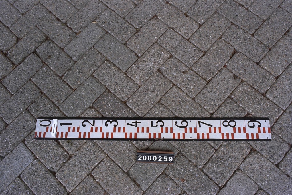 | Beschrijving | Waterpasbaak van 100 centimeter, hulpmiddel bij waterpassen. Deze baak heeft een blokverdeling en een omgekeerde becijfering voor waterpasinstrumenten zonder centrale instellens. |