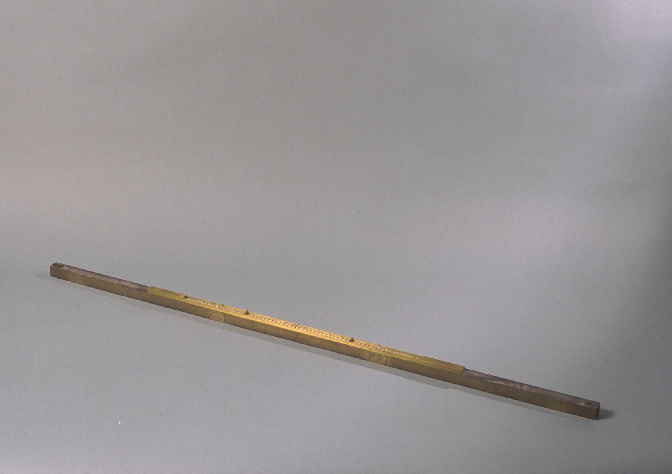 | Beschrijving | Standaardmeter door Dumoulin-Froment, gebruikt voor het ijken van waterpasbaken t.b.v. nauwkeurigheidswaterpassen van 1875-1885. Normaalmeetstaaf die werd gebruikt voor de bepaling van de lengte en uitzettingscoëfficient van de waterpasbaken. De meetstaaf kan worden opgeborgen in een houten kist. Aan de binnenzijde van de kist zijn handgeschreven aantekeningen bevestigd, waaronder de Ministeriële Beschikking van 20-6-1900 nr 213 en verwijzing naar archief NCG. |