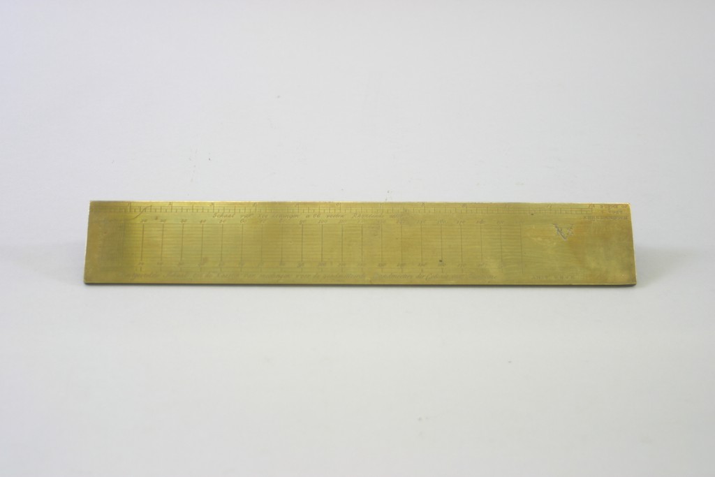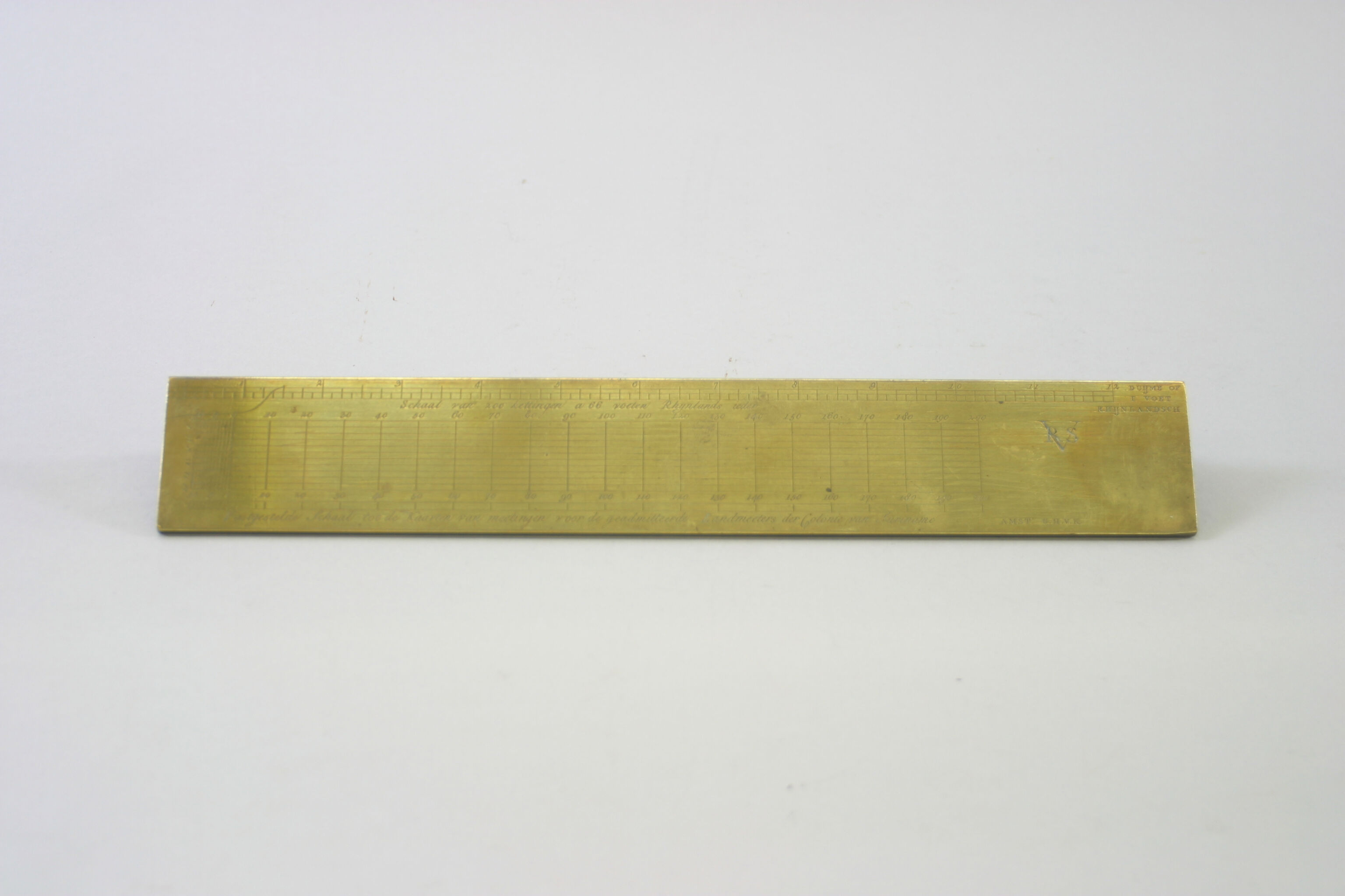 DescriptionTransversaalschaal door G. Hulst van Keulen, gebruikt door landmeters in de voormalige Nederlandse kolonie Suriname. Schaal van 200 kettingen van 66 voeten Rhijnlands ieder. Vastgestelde schaal tot de kaarten van metingen voor de geadmitteerde Landmeeters der Colonie van Suriname.